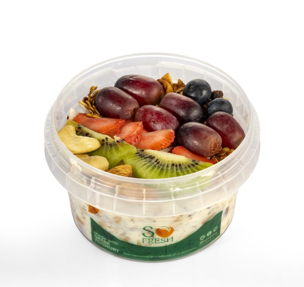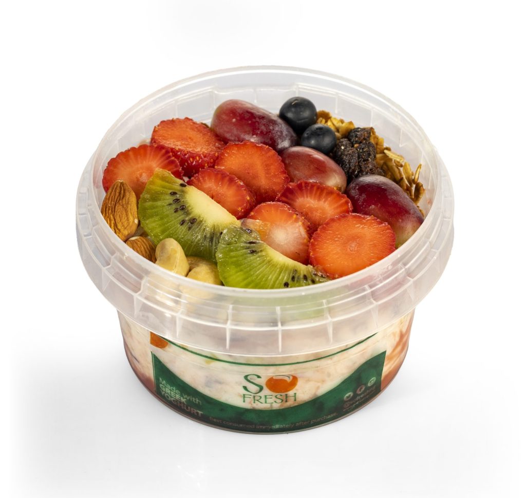 Our parfaits, yoghurts, smoothies, and juices are made fresh daily. For optimal freshness, they should be consumed within 3-5 days, after opening when stored properly in the refrigerator. Check the Greek Yoghurts for expiry dates